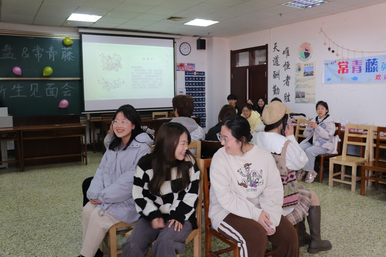 本次活动分为学习分享和游戏两个方面。在见面会开始之前,李鹏飞与马晓超向新生们介绍社团各部门的设置。随后,2021级优秀学子管思茗跟大家分享她的英语学习方法与经验。分享结束后,为活动气氛,让大家相互熟悉,社团干事们准备了抢凳子、抓鸭子、萝卜蹲等有趣的小游戏和品种多样的小零食。新社员们积极参与游戏环节,在紧张的游戏氛围和社团负责人幽默的讲话中将气氛推向高潮。现场掌声、笑声、喝彩声此起彼伏,活动进行的热火朝天。