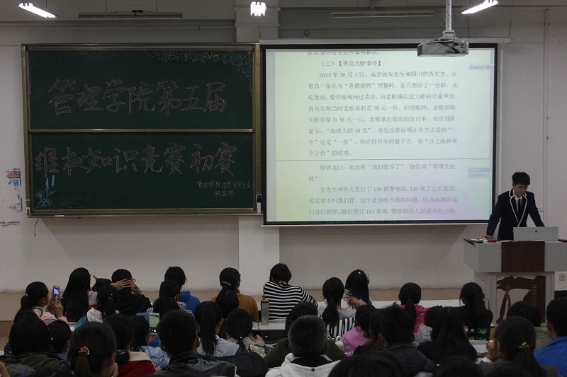 为增强同学们的维权意识,11月4日17:30,由我院团总支学生会权益部主办的第五届维权知识竞赛初赛于JA301顺利举行。