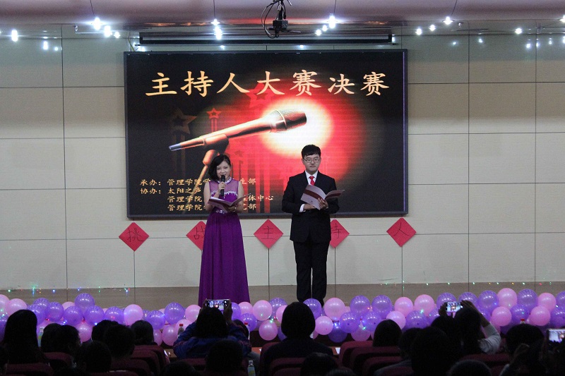 11月6日19:00,由我院团总支学生会女生部承办,太阳之声广播台、院学生会文艺部、院团总支新媒体中心协办的挑战主持人大赛决赛于图书馆报告厅圆满举行。日照校区管理办公室、太阳之声广播台指导老师李艳梅,我院学业导师张应语、王双英,校新媒体中心执行主任朱灏、副主任高帅,太阳之声广播台台长车祥谦、副台长刘蒙蒙、优秀播音迟新宇,我院团总支副书记姜春婷,学生会主席李滟泽,学生会秘书长兼总务中心主任孙婷等作为评委参加了此次活动。