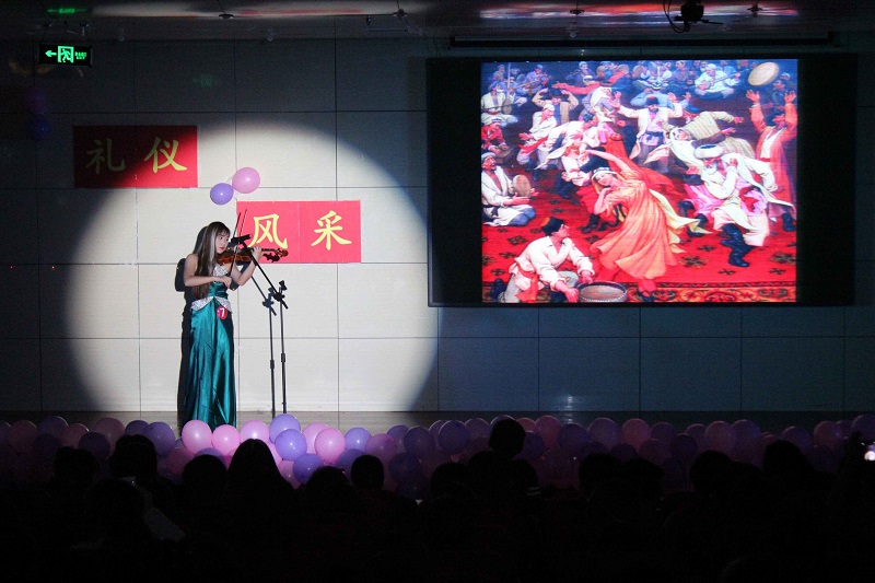 活动伊始,精彩的汉服舞蹈《重回汉唐》,展现了六十年来曲园秉承的传统风貌。据悉,此次礼仪风采大赛共分“登场亮相”、“知书答礼”、“才艺展示”、“互动加分”四个比赛环节。第一环节的走秀表演从民国风、现代风到古典风、运动风展现出我院学子多样的风格。在现场观众高涨热烈的气氛中,答题环节里,参赛选手准确回答了中餐宴会、商务交往等交际场合中应注意的问题,充分展现了个人礼仪的风采。“才艺展示”环节推动现场到达一个新的高潮,选手们愈“战”愈勇,纷纷拿出看家本领。从嗨动全场的歌曲《红日》、充满韵味的舞蹈《夜上海》、感情饱满的诗朗诵《雨巷》,到精彩的国粹表演《京剧串烧》、令观众捧腹大笑的相声《学富五车》、近乎完美的小提琴演奏《新疆之春》,动听感人的歌曲《你是我的眼》,深深触动着在场每一位观众的心。活动中最震撼人心的莫过于由排练花絮制作成的视频,“台上一分钟,台下十年功”,每一位选手辛勤付出的努力,排练的过程中有欢笑也有汗水,但更多的是选手们在逐步成长的过程中收获了一份份真挚的友情。