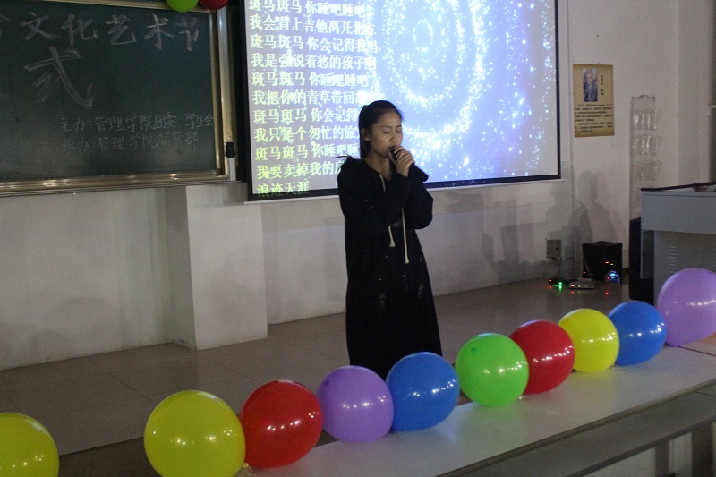 同学们期待已久的宿舍联谊艺术节在主持人精彩的介绍中开始,为了满足观众的胃口,参赛同学们创意层出不穷。慷慨激昂的演讲、精心准备的手语操、饶有意境的吉他弹唱等节目赢得了在场观众的阵阵掌声,活动中间环节,嘉宾胡曼在观众用手电筒营造的“星海”中给大家演唱了《斑马斑马》,观众抽奖以及游戏环节将现场气氛推到了高潮。