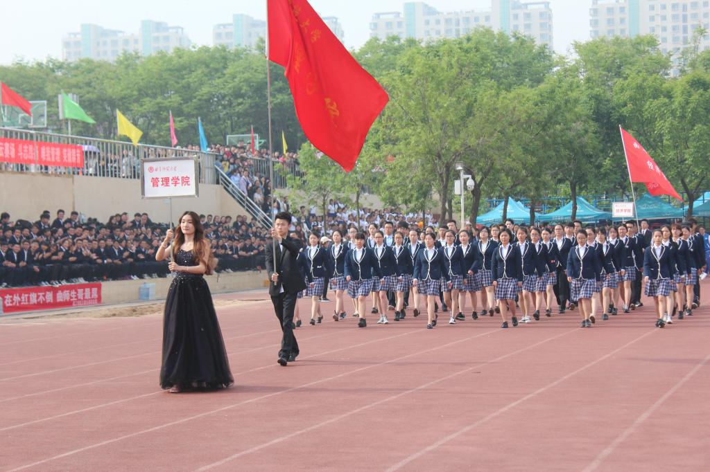 操场上彩旗招展,标语飞扬。伴随着激昂的音乐,以国旗护卫队、裁判员为先导,各院方阵队伍依次入场,其中,我院方阵成员迈着铿锵有力的步伐展示出别样的风采,他们喊着响亮的口号精神饱满的经过主席台。入场仪式结束后,全场师生肃立进行升旗仪式,在催人奋进的国歌声中注视着五星红旗冉冉升起。仪式结束后,开场舞表演正式开始,“翩如惊鸿,矫若游龙”的《重回汉唐》,演绎着我院“儒雅风韵”的内涵,流行舞的串烧,刚柔并济,展现了我院与时俱进、开拓创新的精神风貌。在欢乐而肃穆的氛围中,开幕式圆满结束,赛程正式开始。