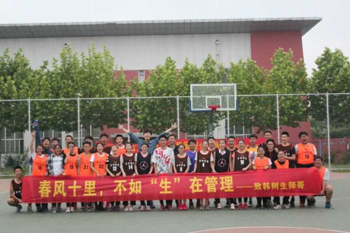 为感谢大四师哥师姐为篮球队的付出,为毕业生留下一个美好的回忆,5月20日16:50,我院在东篮球场举行了毕业杯篮球赛。此次比赛由团委学生会体育部主办。我院党委副书记赵杰,孙旭春老师,巩天雷老师,张应语老师,刘志峰老师和陈海滨老师作为教职工队员参加此次比赛。
