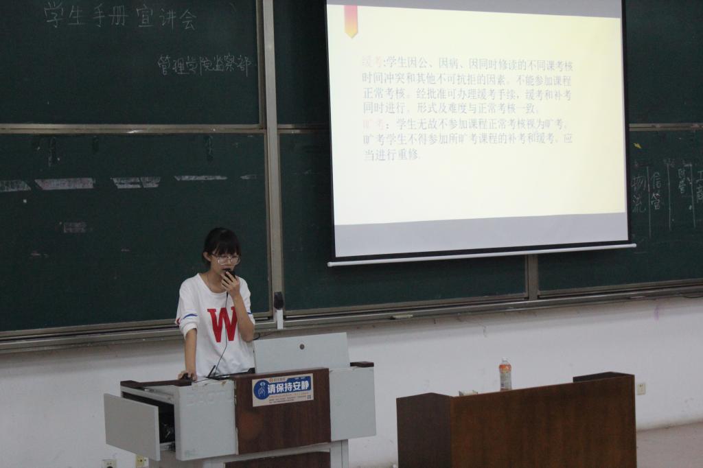 本次《学生手册》宣讲会的成功开展,让同学们对校规校纪和奖惩条例有了新的了解和认识,为我院学子今后的发展指明了正确的方向。