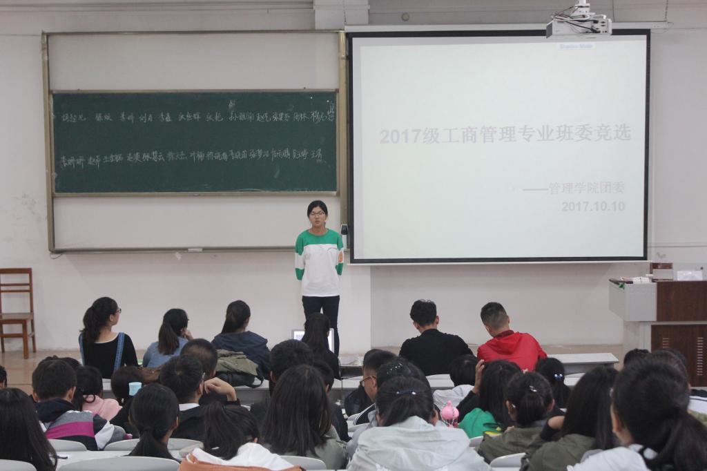 竞选共分三天举行,工商管理班班委竞选活动14:00率先于JA301展开,同日16:00,信息系统与信息管理班级在JC103举办竞选大会,10月11日14:00财务管理班于JA301举办竞选,次日,物流管理班于14:00在JA301举办。