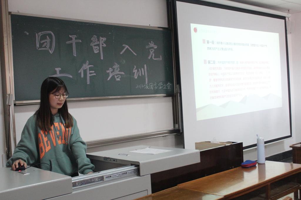 为了加强团干部对入党流程的了解,10月18日16:00我院于JC709举行了团干部入党工作培训。组织部部长徐维苹担任主讲人,15、16、17级各班团支书参加了此次培训。