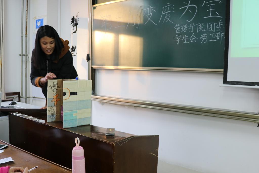 11月22日16:00,体育博彩平台 第三届"变废为宝"大赛于JC103举行。本次比赛由我院团委学生会劳卫部主办,竞赛部协办。