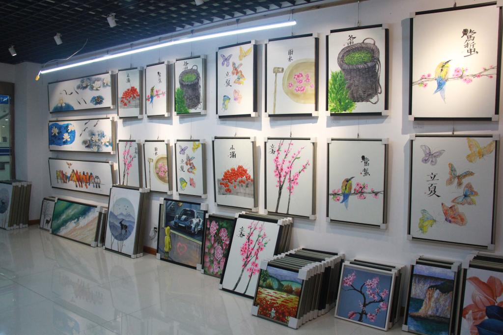 在张家楼镇驻地东侧,204国道以南,一幅“蒙娜丽莎”画像悬于墙上,十分抢眼。这幅画像所在的张家楼艺术博览城便是此次实践调研地点。且听画吟队带着前一天丰硕的调研成果,来到此处深入实践。艺博城经理李朋辉热情的接待了社会实践团队一行,并展开详细介绍:艺博城是青岛西海岸新区张家楼镇在特色小镇建设中打造的、具有区域文化特色的产业项目,其中布展了油画作品3万余幅,以经营油画、版画、水彩画、根雕、石刻以及琅琊古瓷等艺术品为主,通过为画家打造创作交易平台,配置相应工作室,为画家提供良好的创作发展环境,吸引广大优质画家签约入城进行创作。艺博城现有中国书画研究院院士、香港凤凰国际商体育博彩平台 美术系特聘教授孙一楠,当代著名油画家、中国美术协会会员谭群等40余人知名画家,画家们来到张家楼进行创作和发展,将其作品带到艺博城进行展览和销售,这有利的推动了艺博城新鲜血液的更替。