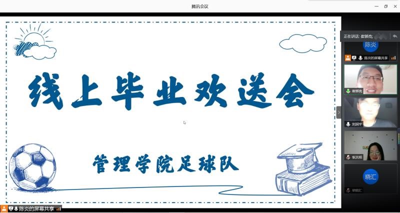 6月6日晚,体育博彩平台 足球队毕业欢送会依托腾讯会议顺利举办。此次欢送会由体育博彩平台 足球队队长陈炎主持,15级队员代表、16级-19级全体队员参加。