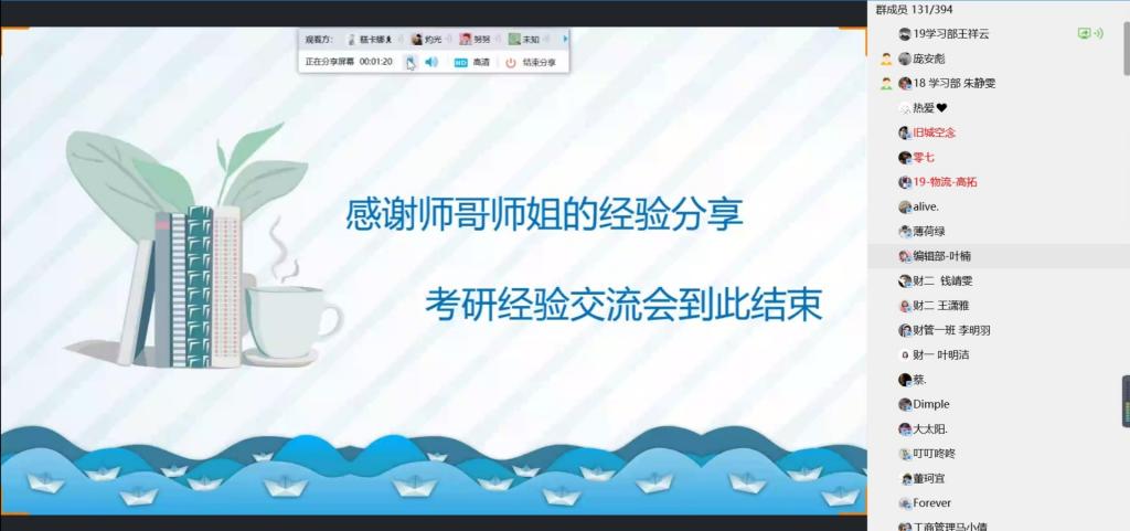 研途修筑梦想,经验拨开迷茫。此次交流会的成功举办,不仅给即将考研的同学提供了宝贵的经验,也为立志考研的同学指引了方向,搭建了交流学习的平台,使同学们对考研过程有了一个更具体、更清晰的认知。