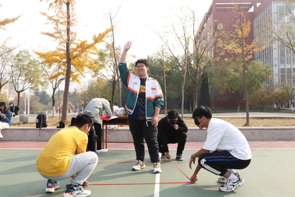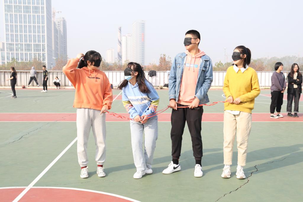 本次活动把心理教育融入趣味互动中,设置“动力小火车”、“放飞纸飞机”、“盲人方阵”和“爱的抱抱”四个项目。第一个“动力小火车”活动在各队气势恢宏的口号中拉开帷幕,本游戏主要考验各队的耐力、柔韧性和默契程度,队员们手脚相连,蹦跳前行,飞快跃起,轻盈落下,互相加油打气。“盲人方阵”与“放飞纸飞机”两个活动同时进行,各队将脑力、体力以及团队协作能力运用到极致,队员们积极投入、互相配合,在欢呼呐喊声和加油声中享受着比赛每一个瞬间。“爱的抱抱”环节展示出队员之间团结有爱、互相爱护的集体精神,给予同学们心理上巨大的慰籍。纵使比赛中有些许的困难与挫折,同学们始终发扬“锐意进取,积极向上”的比赛精神,为团队争取荣誉。