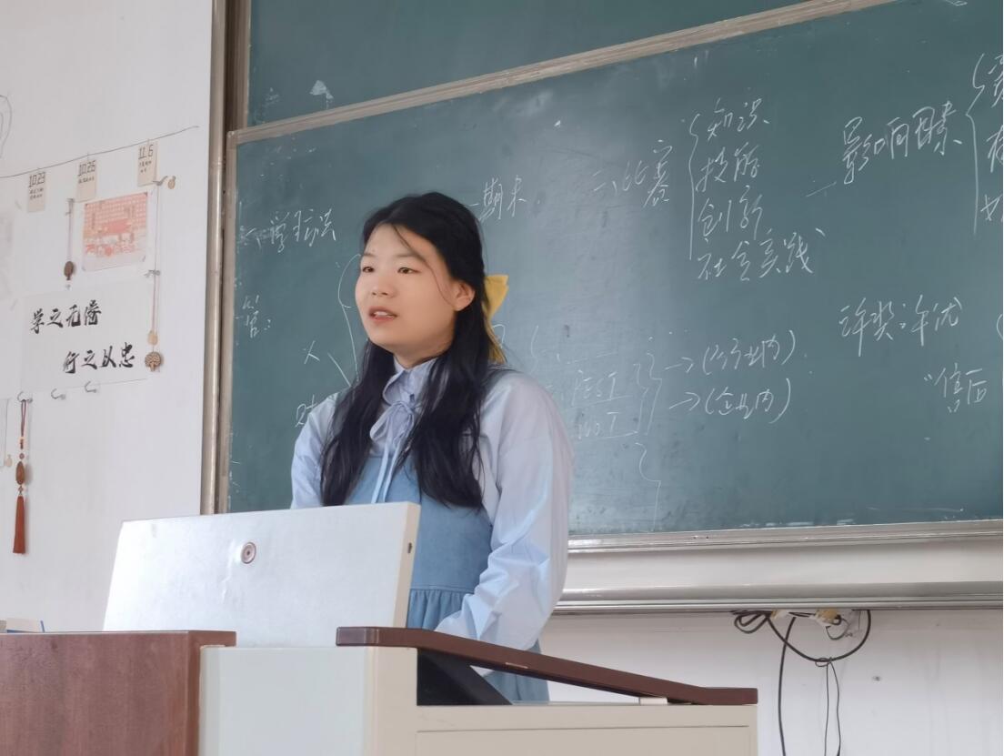 会议伊始,王立新从学习、竞赛、评奖评优三个方面展开分享。首先,她提出要系统化、体系化地学习,运用思维导图或大纲等方式加深记忆与理解;其次,在竞赛方面,王立新重点强调了项目策划书的撰写。良好的项目计划书离不开标新立异的想法,她建议同学们在日常生活中多观察、多思考,拥有长远目光,尝试自我拓展,才能妙计层出。同时她号召积极参加各种活动,注重自身全方位发展,为日后评奖评优打下坚实的基础。随后,张晓晴重点分享了她宝贵的考证经验,她提到:获得英语四六级考试高分是保研的根基;计算机二级及三级证书是未来面试的增分项;考取初级会计师证书及教师资格证则会使自己未来的道路锦上添花。考取证书要从自身实际情况出发,不盲目从众,随波逐流。最后,张建芬深入讲解她的竞赛经验,她表示:参加数学建模竞赛时,可以跨专业组队,使成员们优势互补;备战数学竞赛时,需复习巩固高等数学等相关知识,查找往年真题寻找出题规律。张建芬认为学生的主要任务是学习,一定要合理规划时间,不要本末倒置。另外她提出,在准备“互联网+”、挑战杯等创新创业类竞赛时要重视团队组建过程,善于观察生活痛点问题,并对创业计划书的撰写技巧进行详细讲解。