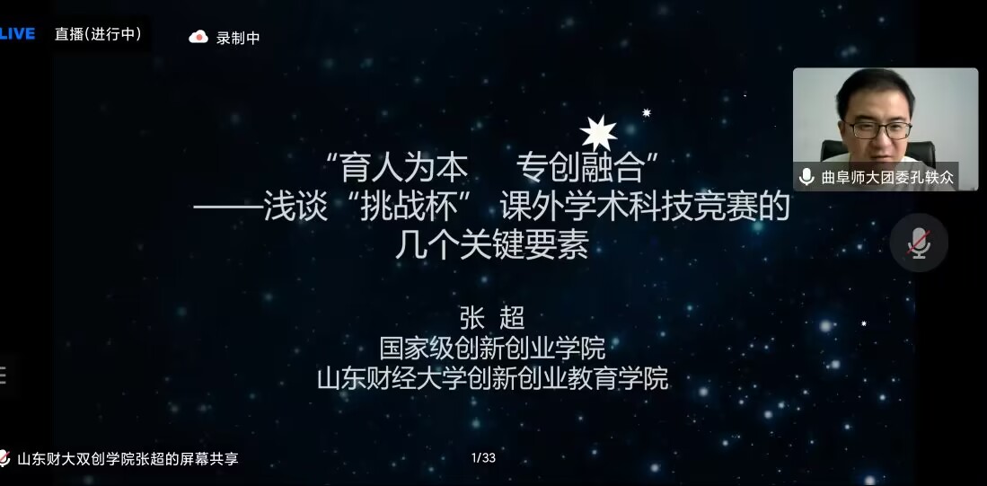 (通讯员:戴晗 曹佳惠 徐敏超)11月23日体育博彩平台 组织收看第十八届“挑战杯”竞赛培训。本次培训由山东财经大学团委书记张超担任主讲人,线上给同学们讲授“挑战杯”竞赛的相关知识。
