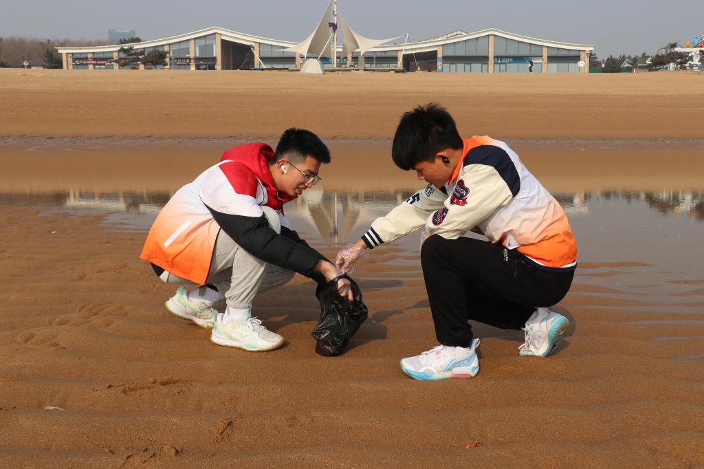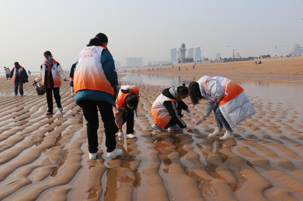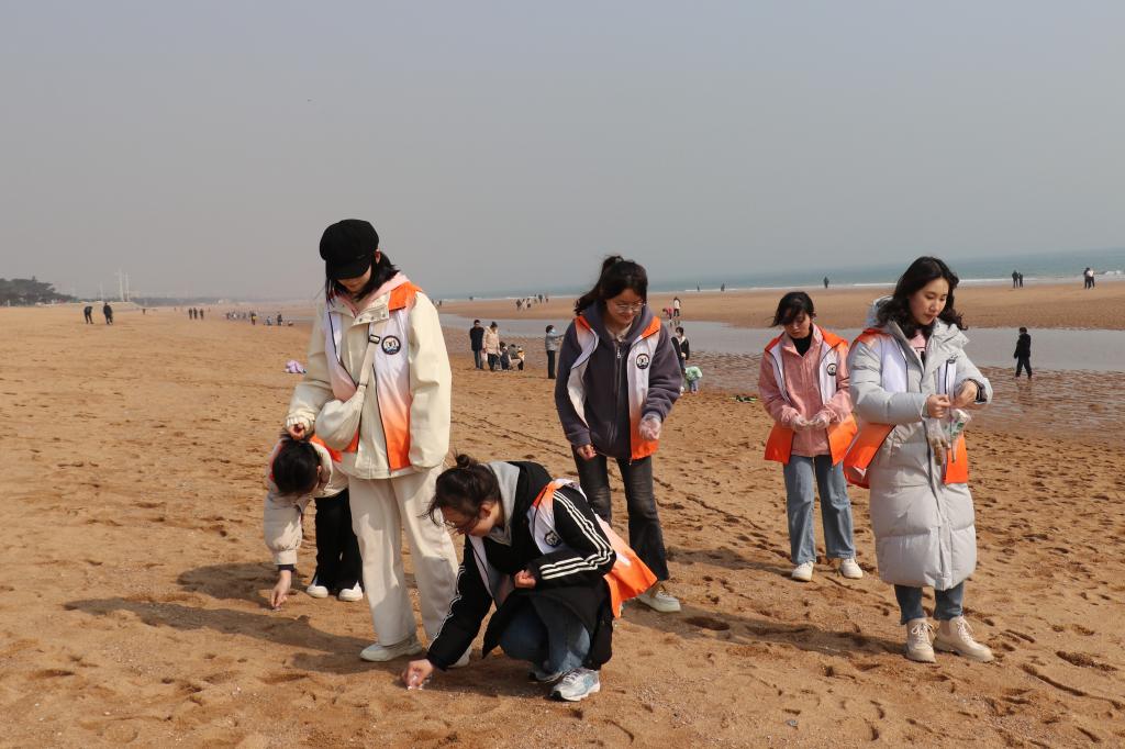 海滩捡拾垃圾,共筑碧海蓝天——曲阜师范大学体育博彩平台 顺利开展青年学雷锋志愿服务活动