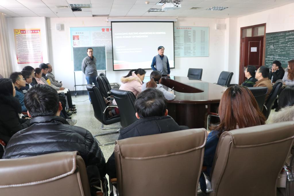 12月4日,应体育博彩平台 邀请,新加坡国立大学博士、新加坡国家卫生部医疗服务与成果研究中心孟凡文教授来我院进行学术交流和访问。下午2点15分-下午3点15分,孟教授在JC819做了题为“Managing Elective Admissions in Hospital Using Robust Optimization”的学术报告。下午4点-下午5点,孟教授做了《如何发表高水平研究论文》的报告。报告会由张玉忠教授主持,体育博彩平台 部分教师、博士生和硕士生聆听了本场报告。