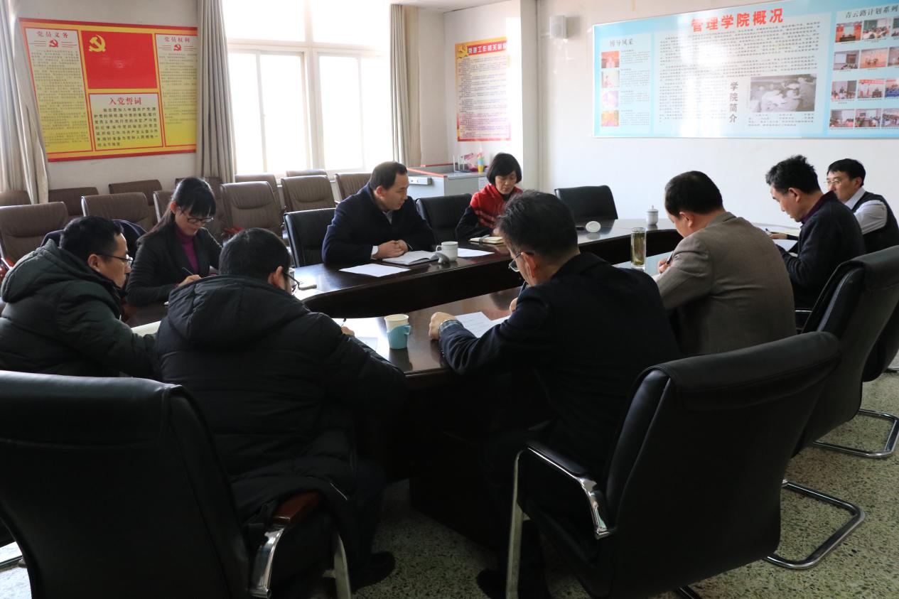 12月27日,校党委常委、副校长辛杰、国际交流处处长梁美玲、副处长牛香臻一行就国际化办学工作到体育博彩平台 调研,体育博彩平台 党委书记刘进、副院长王宜举、党委副书记赵杰及部分教师代表参加调研。