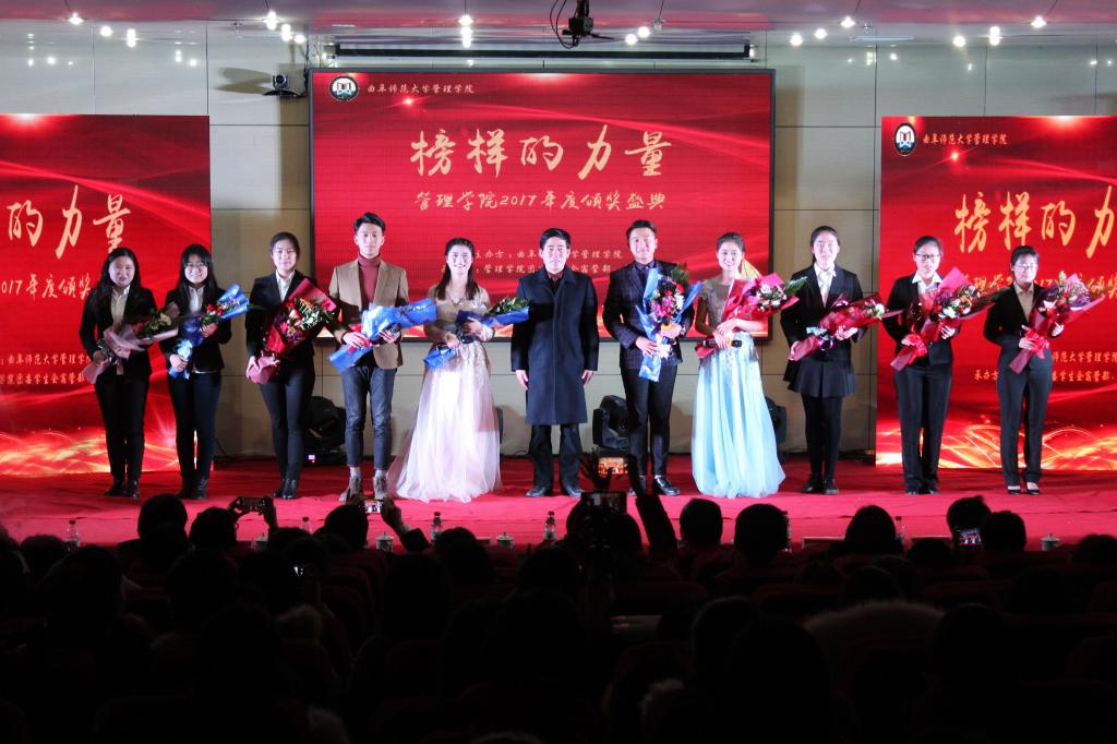 颁奖典礼上,优秀学子神采飞扬。上百名优秀个人、优秀集体得到表彰,包括:全国大学生数学竞赛国家赛区一、二、三等奖获得者,山东赛区一、二、三等奖获得者;全国大学生数学建模竞赛全国二等奖团队,山东省一、二、三等奖团队;全国逆向物流设计大赛国家级优秀奖获得者;大学生财务决策大赛北区三等奖获得者;第八届山东省大学生创新创业大赛省级三等奖团队;暑期“三下乡”社会实践国家级优秀队伍和国家级优秀报道奖队伍;“挑战杯”全国大学生课外学术科技作品竞赛省级一等奖团队;国家奖学金获得者、省政府奖学金获得者、山东省优秀毕业生,国家级科技创新项目获奖团队,荣获全国英语竞赛国家级一、二、三等奖的学子,以及高分通过雅思考试的同学。此外,还表彰了山东省优秀班集体、曲阜师范大学十佳百优班级、曲阜师范大学十佳学子、学霸宿舍、文明宿舍、科创宿舍、文体宿舍、军训优秀标兵、优秀运动员、三好学生标兵、优秀学生干部、年度专业之星和年度人物。张玉晶、王丽、吕文蓉、王永霞、王玉杰、袁媛等优秀学子代表先后发言,道出对师弟师妹们的殷切希望:在前进的道路上,要永葆自信和激情,见贤思齐,刻苦奋斗。期间,还呈现了歌曲、舞蹈、手语操、微话剧、诗朗诵等才艺展示。
